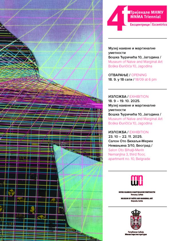 The Museum of Naïve and Marginal Art is organizing its Fourth Triennial this year, entitled Eccentrics, which was officially opened on September 18 at 6 p.m. at the MNMA Gallery in Jagodina. With this exhibition, the MNMA continues its tradition of biennial and triennial reviews of artistic production created outside the dominant centers of the art world. The exhibition’s curator is Radmila Staмеnković.