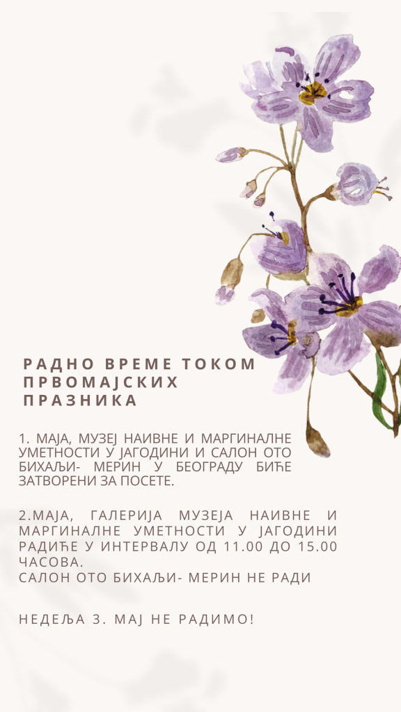 Музеј наивне и маргиналне уметности у Јагодини и Салон Ото Бихаљи-Мерин у Београду неће радити током ускршњих празника.