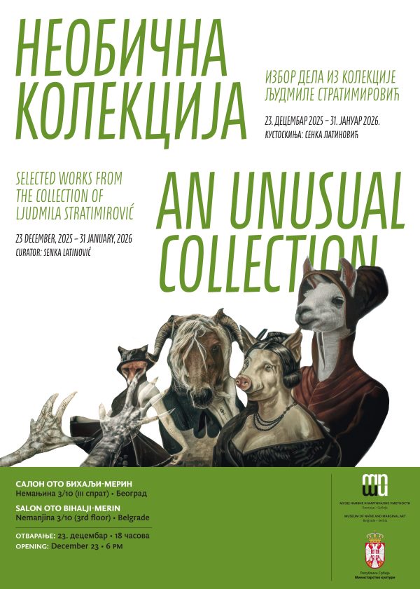 У уторак, 23. децембра у 18 часова, биће отворена изложба “НЕОБИЧНА КОЛЕКЦИЈА: Избор дела из колекције Људмиле Стратимировић” у Салону Ото Бихаљи-Мерин у Београду. Кустоскиња изложбе је Сенка Латиновић.